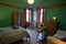 Bright and spacious bedroom in a beautiful detached Victorian house, featuring two large windows overlooking trees. Beautiful garden, perfect for relaxing outdoors in the summer.