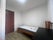 Single bed frame, mattress, built in wardrobe, table chair, side table and curtain.
