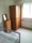 The room is furnished with double bed, wardrobe and chest of drawers.