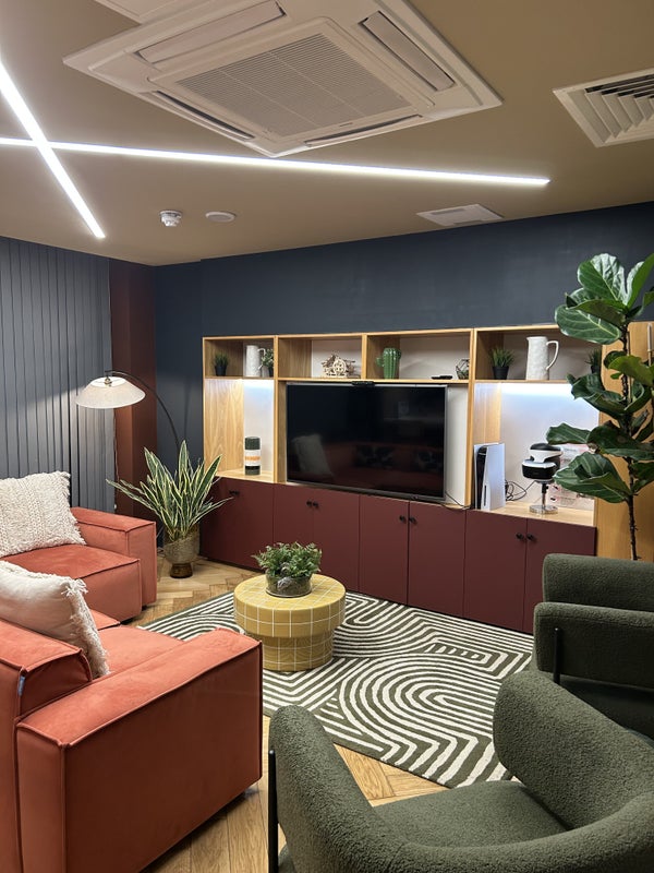 - Common room with pool table, TV, gaming console and VR headset
