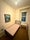 Bed frame, mattress, pillows, table, chair, cupboards are included in the single bedroom.