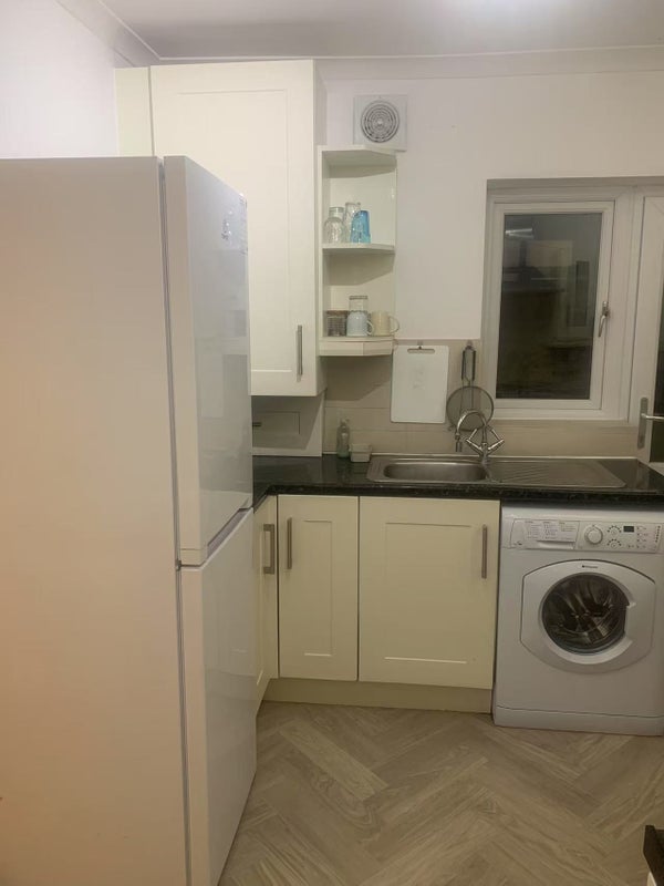 The room is in a ground floor. The flat has two bathrooms, one is shared by two flatmates. A full equipped kitchen with dinner table. Central heating and 24 hours hot water.