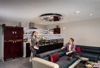 Indulge in the charm of the Luxe Lounge, where sophisticated communal living spaces meet a fully equipped kitchen stocked with cutting-edge appliances and utensils. Each guest enjoys a private fridge/freezer and secure storage with a key card locking system, plus amenities like a dishwasher, blender, rice cooker, and drinks cooler.