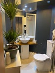 • Modern shower room with shower cubicle, toilet, and heated towel rail