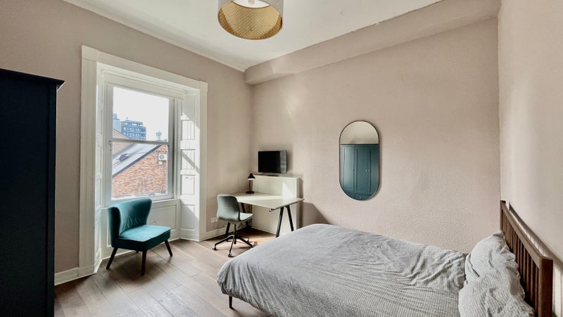 It's in a great spot, with easy access to city centre amenities and all the universities. It has excellent transport links including the subway and rail stations within five to ten minutes walk, while the M8 is literally around the corner. Resident permit street parking can be applied for.