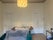 Large living room with two sofas (one is also a sofa bed), coffee table, television, big dining table, shelves, and storage cupboard.