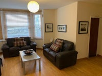 Large shared kitchen, living room, bathroom and downstairs toilet.