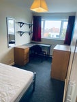 A really spacious and furnished room. On the second floor, the house is clean and has lovely housemates. Shared with 4 other students. 1min walk to the bus stop.