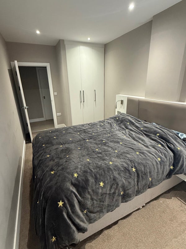 Spacious king-size bedroom available in a clean and friendly house share. The room comes fully furnished with a comfortable king-size bed and a large wardrobe offering plenty of storage.