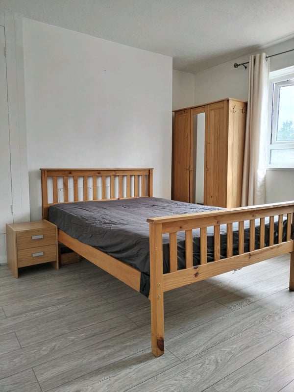 The room is furnished with a double bed, fitted wardrobes and wardrobe, table, chair. You also have shared use of the fully fitted kitchen.