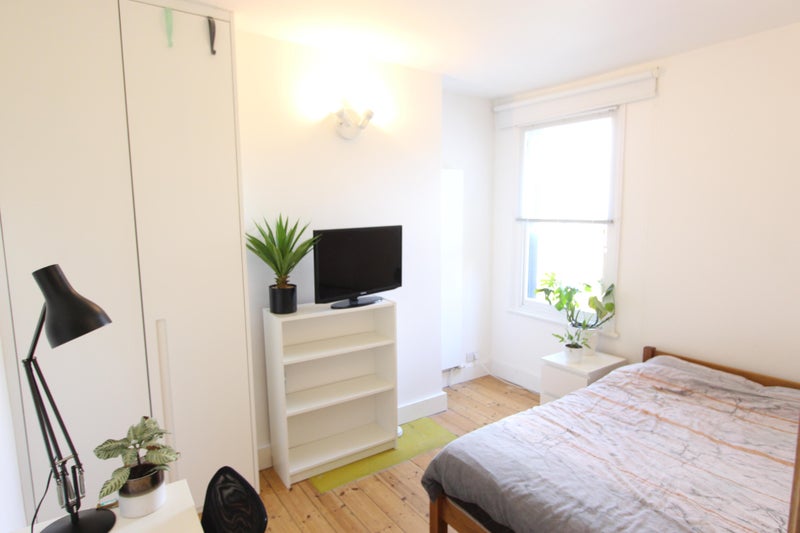 A bright first floor double with great natural light and exposed wooden floorboards. Fully furnished and comfortable with a lovely feel to it ✨.
