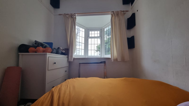 Double room going in a social, creative house in Charlton. The room has wooden floors and a big bay window so it gets loads of natural light. It’s currently used as a third living / exercise space. You can keep the chest of drawers and use the sofa bed as your bed if that works for you, or have it unfurnished and bring your own setup and feel free to decorate as you wish :)