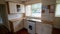 - Kitchen with dining area with plenty of storage units, fridge, freezer, washing machine, and microwave;