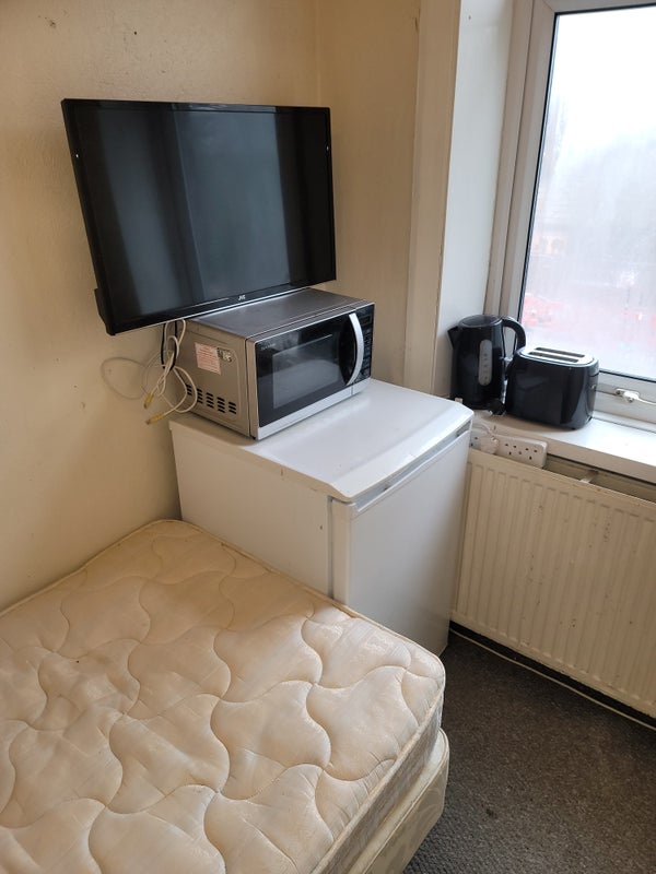 Studio flat available consisting of small kitchen with electric cooker washing machine microwave kettle toaster and fridge freezer the room has a double bed 2 seater leather sofa a 32 inch smart tv a double glass door wordrobe the it's got new carpets and lino I am only looking for quite decent person it is available immediately I also have a single room fully furnished for 320 available immediately