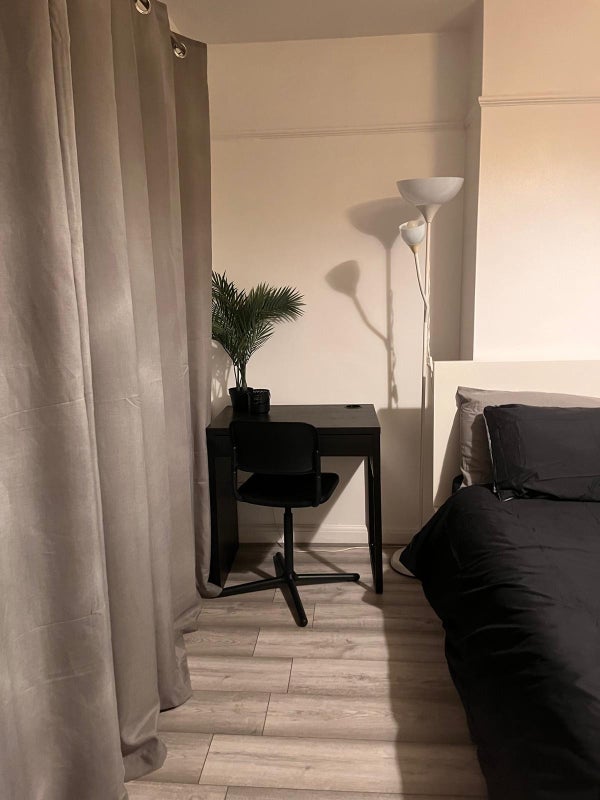 Room 2 - Downstairs front double - a large double room with lovely big bay windows that allow lots of light into the room. Fully furnished with bed, desk, chair, wardrobe and double bed.