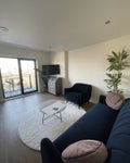This room is in a 2 bed/2 bath penthouse apartment overlooking the canal and only a 5 minute walk to Leeds train station. Includes a small outdoor terrace and balcony with stunning views of the city centre.