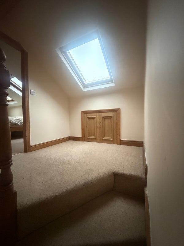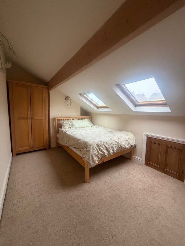 The room is on the top floor so it feels private and cosy. There’s plenty of storage in the room and on the landing.