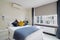 Recently refurbished to an exceptional standard, the apartment is a masterclass in upscale urban living. Porcelain tiled flooring flows seamlessly through the interiors, offset by bespoke solid-wood doors and tasteful modern finishes. The light-filled reception room is enhanced by elegant contemporary furnishings, an LCD TV with international satellite access, and expansive windows that invite in the city's energy while maintaining peaceful privacy.