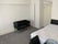 Furnished with built in wardrobes and chest of drawers, chairs and small desk, double bed black leather headboard and black sofa.