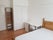 The room is furnished with a double bed with mattress, closet, desk and chair.