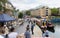 The area is surrounded by shops, cafés, and local amenities.