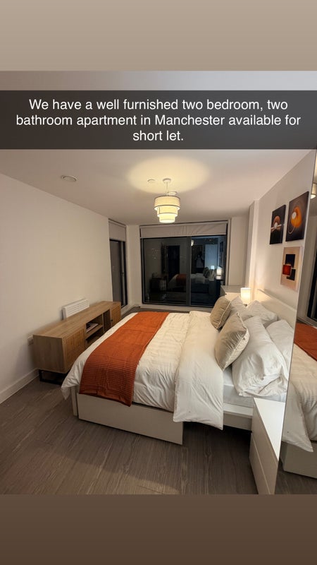 Well furnished two bedroom apartment in Salford just 7 mins walk to Deansgate and 5mins drive to town center. Room 1 (ensuite) already occupied and room 2(double) with own bathroom available.