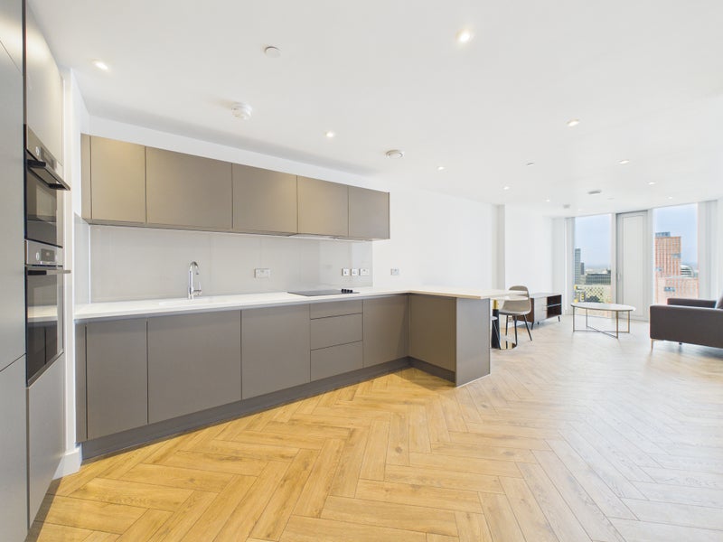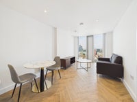This apartment is thoughtfully furnished, with large wardrobes provided in equally sized en-suite bedrooms with Ottoman beds to maximise storage space. Stunning views towards Ancoats can be enjoyed from the living area and both bedrooms. Additional extra touches, including wall art, greenery and soft furnishings make this the ideal move-in ready apartment.