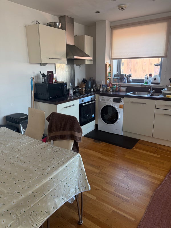 Large double bedroom available immediately. Shared living area with balcony right next to Oxford Road Station.
