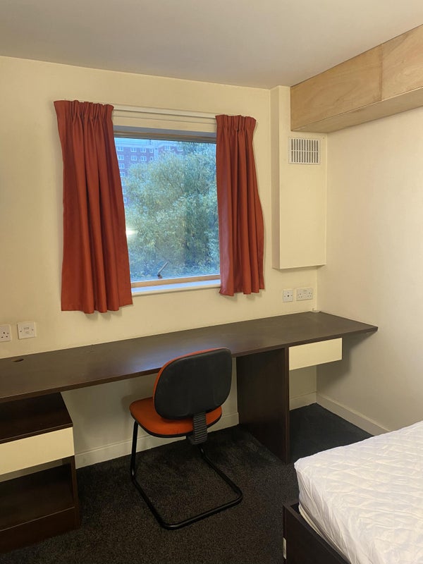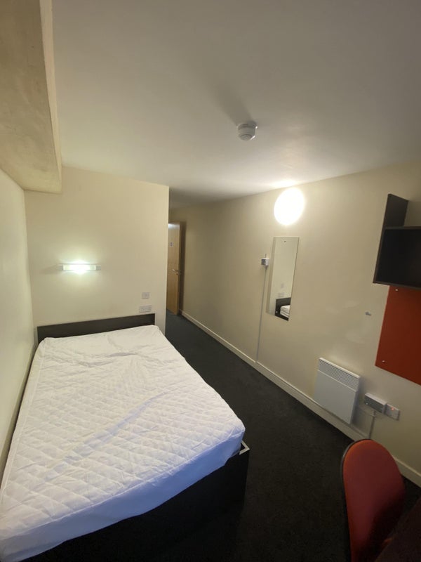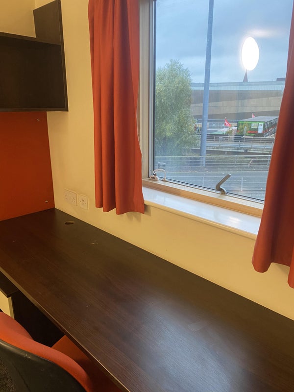 The room has an en suite and a queen sized bed overlooks the town, there is a shared joined kitchen and living room. The flat mates are lovely as there is 3 people living in the flat now, and they are very easy to get a long with.