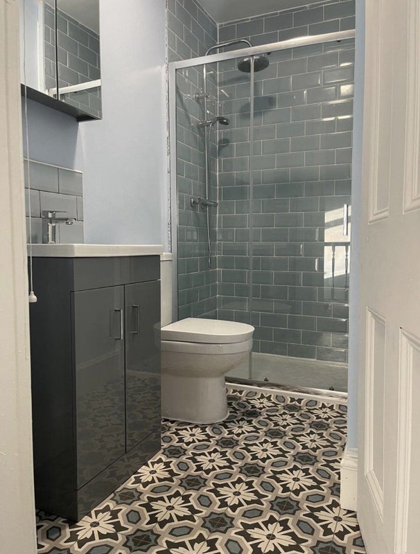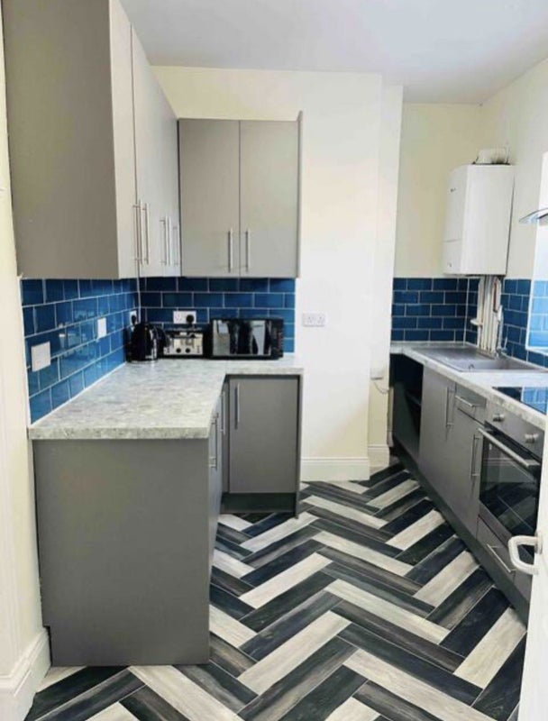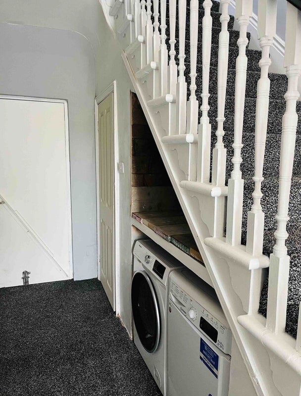 There are 2 bathrooms with showers. A shared kitchen with own cupboard top and bottom per room.