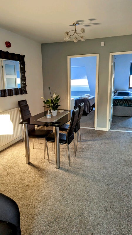 2 double bedrooms, shared living/dining room, kitch and bathroom.