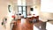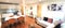 There’s a shared spacious open plan living room area, dining area and a kitchen with built-in appliances including microwave oven and large fridge-freezer.