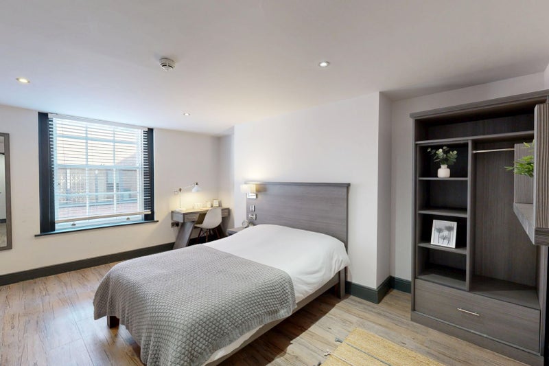 6 Ensuite Bedrooms: Each bedroom in this apartment is fully equipped with its own private ensuite shower room, providing the perfect balance of privacy and convenience for every housemate. Each room comes with a bed, wardrobe, and study desk, making it a great space for both studying and relaxing.