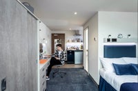 Our Triumph House Platinum studios boast an en-suite bathroom, self-contained fully fitted kitchen, comfy double bed, desk space, wardrobe, 32-inch flatscreen smart TV, kitchen and bedding essentials upon arrival, and superfast Wi-Fi.