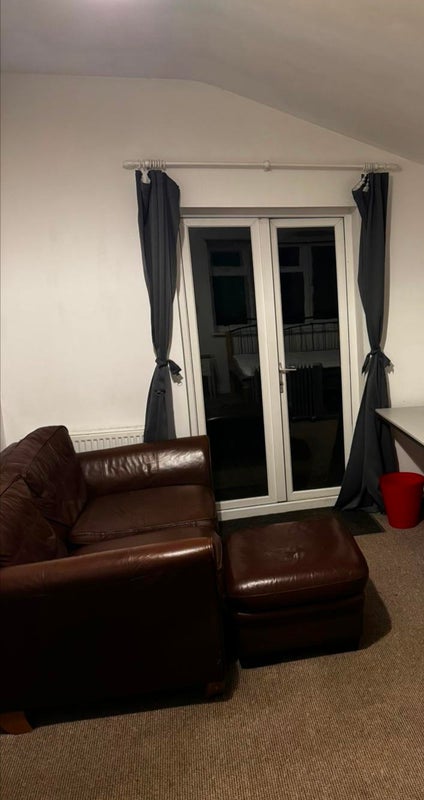 Large downstairs room with separate entrance. Double bed, wardrobe, desk, and sofa.