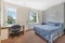 Rooms include a double bed, wardrobe, mirror, sets of drawers, desk and chair.