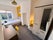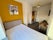 A bright and sunny double room located on the first floor, overlooking the garden, featuring a mustard yellow accent wall. The room shares a bathroom on the same floor.