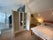 Ample storage including a three door wardrobe, under eaves and desk with lots of shelves for working/getting ready.