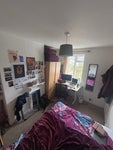 The room is on the 1st floor and has a double bed, wardrobe, drawers, and a desk and chair. The room gets lots of lovely natural light and shares a bathroom with two people.