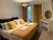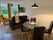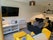 The property is ground floor and has a large sitting/dining room with windows and doors overlooking the communal garden. There is a large smart TV, sofa, chair and a dining table and chairs. There is also a dedicated workspace with a desk and chair for anyone studying from the apartment.