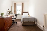 A lovely Victorian town house accommodating 10 people, only a 2 minuets walk to either Mutley plain or the university campus. the room being advertised is on the second floor, has a single bed, sink, and furnishings (desk, clothes rail, drawers). the house boasts a large shared kitchen with dishwasher, tumble dryer, washing machine, and living room with dining table, 4 sofas and a tv, aswell as enough parking for 4 cars (please note 2 spaces are already taken), and 3 bathrooms each with their own shower. bills are included except for heating which has an allowance of £10 per week per occupant i. e. £100 per week for the entire house (if the heating bill goes over £100 any week for the whole house then the occupants must pay anything over that amount).