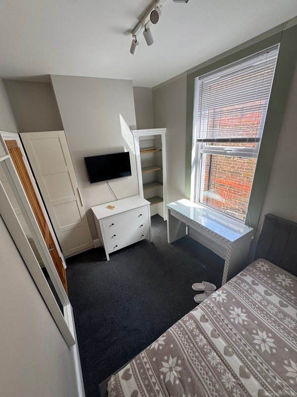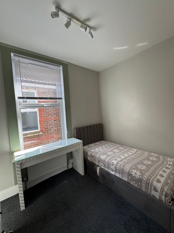 I have a cosy single room in a fully refurbished house for rent, The room consists of all necessities such as single bed with new very comfortable mattress, new chest of drawers and desk with plenty of storage and a mirror. It has been fully redecorated and fitted with new carpet this week. The property is situated in Central Southsea walking distance to seafront. 2 minutes walk to Lidl and Tesco, Home Bargains and Aldi. 3 min from Fratton Rail and bus stops going to University and City Centre. This property is to share with only 3 busy professionals. Ths is a lovely and quiet house! We are looking for a tenant in full time employment or a Student with Part-Time job. This is an exceptionally clean house share. We have a weekly cleaner who cleans all communal areas and maintain appliances such as oven washer or dishwasher. We have one bathroom upstairs and a large toilet with sink and mirror downstairs to be shared only with one other. We have recently fitted modern kitchen with large dishwasher. The kitchen is equipped with all necessary appliances. This is a private house so no hidden fees and agent issues. There is a months deposit required and rent is paid monthly. All bills including cleaner are included in rent. Current tenants are all between 25 and 32. Two of us are care workers and one works as aviation security officer. We are ideally looking for a single professional without pets or children in similar age. Non-smoker is preferred :) Please get in touch if you have any questions!