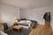 The room comes furnished (bed, wardrobe, chest of drawers, and desk)