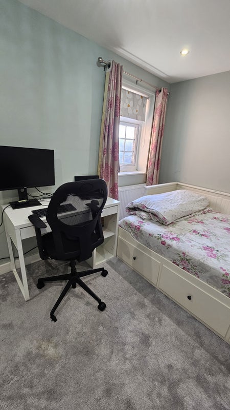 One double bedroom in house with landlord for student at 10 mins walking distance from University of Reading, near Asda, bus stop 21, fully equipped shared kitchen, washer dryer ,common living, common dining , shared shower, wc, parking available, broadband, landlord living in house