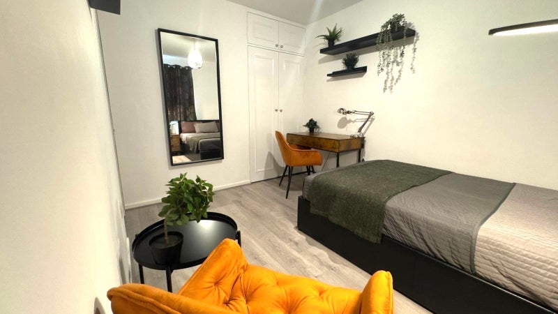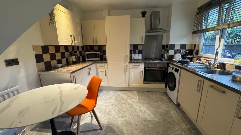 Monthly bills include water, electricity, gas, council tax, weekly cleaning service and high-speed broadband, all for £75 per month.
