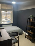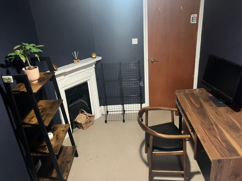 The bedroom is furnished, including a small double (130cm width), desk and chair, and bookcase. I will also purchase a wardrobe for it, so you could have some say on what type you would prefer (but wouldn't be expected to pay anything).