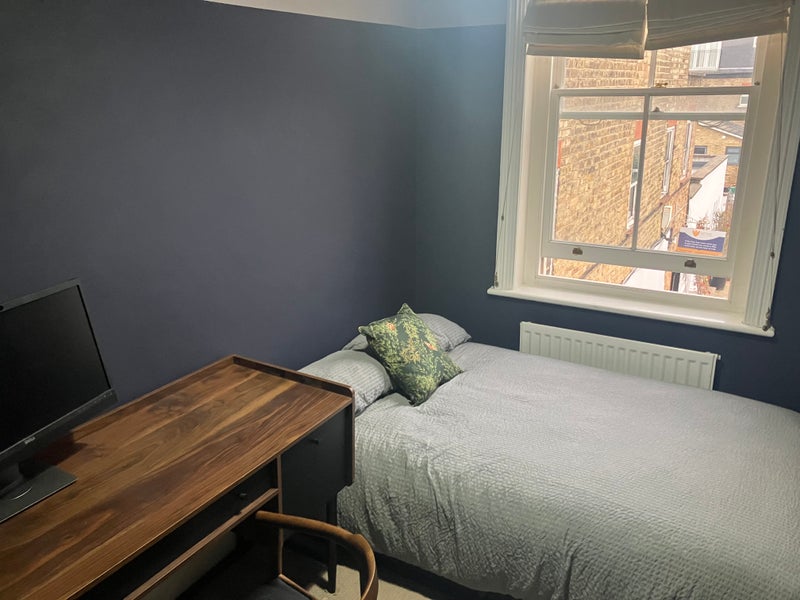 My spare bedroom is available in a lovely 2-bed flat in East Sheen. It is about a 1-minute walk from Mortlake station, so quick and easy connections to Richmond, Clapham, Waterloo, and more. Available from the beginning of April, but there's some flexibility on that.