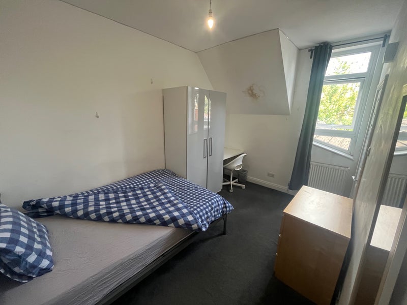 Double bed with brand new memory foam mattresses, desk, chair and IKEA wardrobe with drawer and rail along with blackout curtains as standard in each room.
