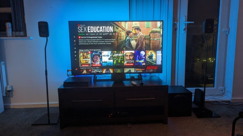 The house features a welcoming living room for movie nights, a