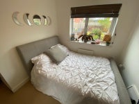 A double room with a new double bed, a full wardrobe and plenty of storage underneath the bed (ottoman style bed) with a lovely modern full bathroom.